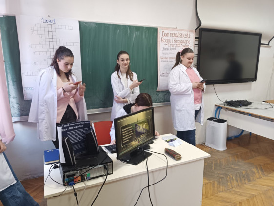U srijedu 25.febtuara Geografska sekcije i prof.geografije održali historijski čas za Dan nezavisnosti BIH.Čas je održan u IIa odjeljenju u prisustvu zamjenice direktora Kešo Sadine i kolegice Nezrine R. Članovi sekcije pripremile su tekst koji se čitao svim odjeljenjima u prvoj smjeni.Takoder su pripremili prezentaciju, križaljku tj. osmosmjerku, pano i kviz.