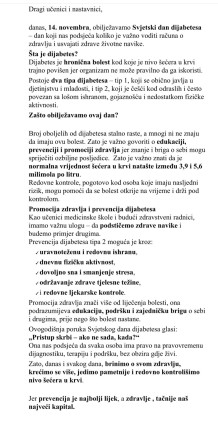 U navedene aktivnosti povodom obilježavanja Svjetskog dana dijabetesa uključeni su bili učenici